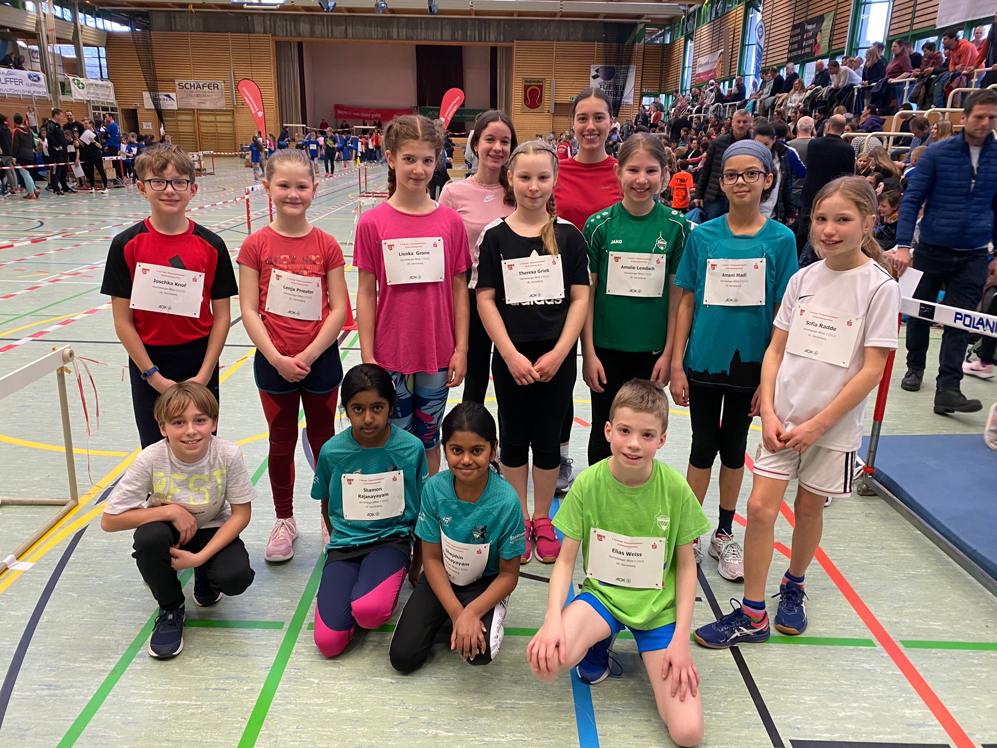 Den Beginn machten vormittags die Kinder der U10 (Jahrgang 2014 & 2015). Hier gingen Ata Karakurt, Tim Lauber, Noah Heldmaier, Leopold Huber, Sophie Kayser & Emil Fabry gemeinsam an den Start. Die 6 durften sich in 5 verschiedenen Disziplinen mit 18 anderen Vereinen messen. Zu den Disziplinen gehörten neben dem 30 m Sprint, das Stoßen mit einem Medizinball, Wechselsprünge auch eine Weitsprung- und Hindernisstaffel. Zum Abschluss des Vormittags gab es noch eine Siegerehrung, bei der die Kinder ihre Urkunden über den 16. Platz in Empfang nehmen durften. Nach dem die Siegerehrung abgeschlossen war, begann der Wettkampf der Gruppen U12 (Jahrgang 2012 & 2013). Hier gingen neben 15 anderen Teams gleich zwei Gruppen des VFL Herrenbergs an den Start. Bei den Herrenberger Blitze 1 gingen Theresa Grieb, Lienka Grone, Elias Weiss, Shephin Rajanayayam & Shamon Rajanayayam an den Start sowie bei den Herrenberger Blitze 2 waren Amani Hadi, Sofia Radde, Lenja Priester, Amelie Lembach, Axel Reptin & Joschka Knof im Team. Die beiden Gruppen durften, wie die U10 auch 5 Disziplinen bestreiten. Diese waren ebenfalls der 30 m Sprint, das Stoßen mit einem Medizinball und die Hindernisstaffel. Zudem durften sich die Kinder in den Disziplinen Fünfsprung sowie beim Scher-Hochsprung messen. Nach verschiedenen spannenden Wettbewerben durften die zwei Teams gegen Abend ihre Urkunden zu einem guten Platz 10 bei der Siegerehrung in Empfang nehmen und konnten so das Wochenende erfolgreich abschließen.