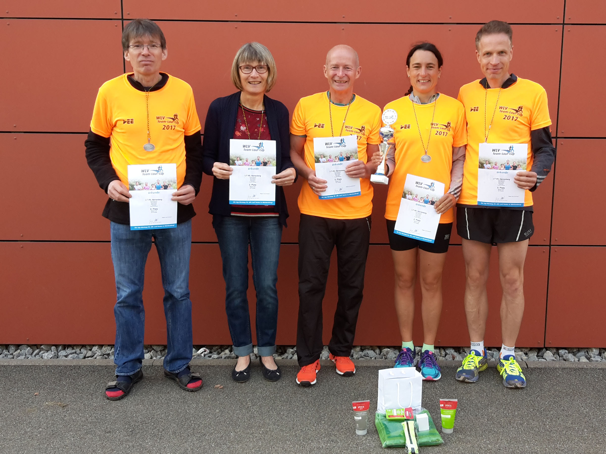 Zum 4. und letzten Lauf des WLV Team-Lauf-Cups in Nagold ging der Lauftreff mit einer starken Zahl an Läuferinnen und Läufern an den Start. Nach den zuletzt kalten Tagen meinte es der Wettergott sehr gut mit den Athleten. Bei bestem Läuferwetter konnten im Stadtpark Kleb die vier Runden à 2,5 Kilometer gelaufen werden. Da dieser Lauf als Teamwertung gewertet wurde, (das Ergebnis des Dritten Läufers/Läuferin wurde gewertet) kam es darauf an, als Mannschaft gut zu agieren. Ganz nebenbei konnten so auch einige Starter ihre persönliche 10 Kilometer Bestzeit verbessern. Das Mixed-Team freute sich sehr, dass es seinen 2. Platz, den es sich in den vergangenen drei Rennen erkämpft hatte, auch beim letzten Start erfolgreich verteidigen konnte. Bei der Siegerehrung nahm die Mannschaft stolz die Medaille und den Pokal, der sicherlich im Vereinsheim einen Ehrenplatz bekommen wird, in Empfang. Das Frauen-Team belegte in der Gesamtwertung des Cups den 4. Rang, die Männer-U40 des Lauftreffs erreichte den 6. Gesamtplatz.